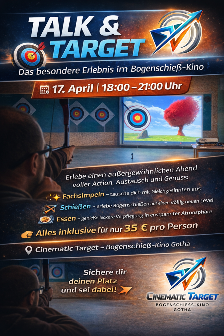 Vergiss klassische Netzwerktreffen. Bei Talk and Target verbinden wir gute Gespräche mit modernster Technik. In unserem Bogenschießkino tauchst du in interaktive Welten ein und spürst die Faszination des Bogensports – völlig zwanglos und mit jeder Menge Spaß.